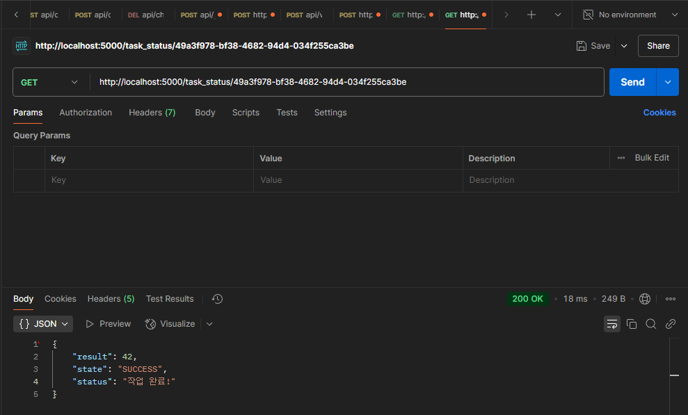 폴링방식인 방금 받은 task_id를 포함시켜서 서버에 요청해서 작업이 완료 됬나 확인하는거다.