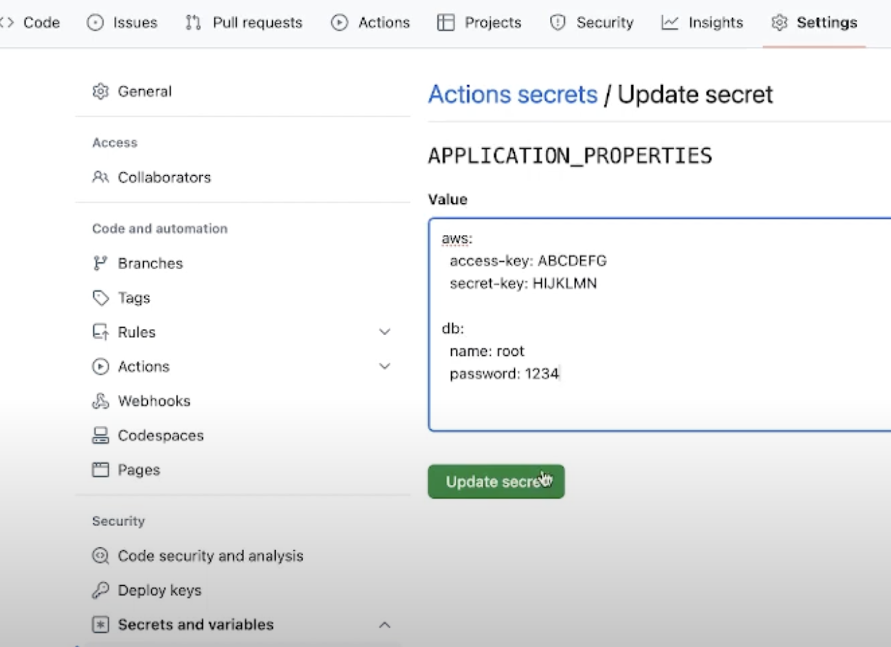 - env: APPLICATION_PROPERTIES: ${{secrets.APPLICATION_PROPERTIES}}