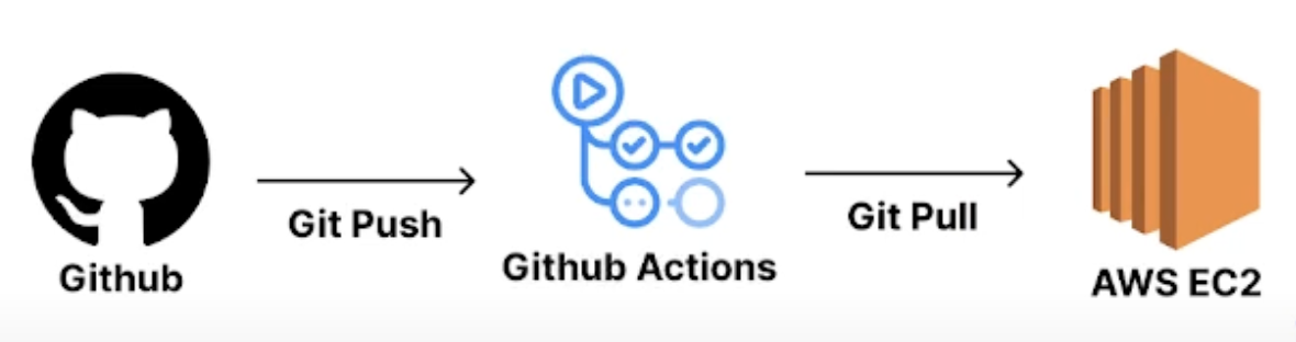 git push → GitHub Actions가 푸시 감지 → EC2에 SSH 원격 접속 → git pull 실행 및 서버 재시작